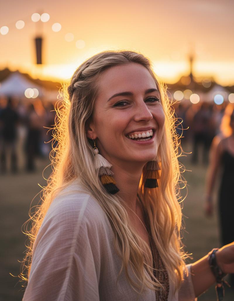 Lena trug die Bali Cinta Ohrringe zu einem örtlichen Festival, das für seine lebhafte Musik und die bunten, kreativen Outfits bekannt war. Die Ohrringe funkelten im Sonnenlicht und zogen die Aufmerksamkeit vieler Festivalbesucher auf sich. Überall, wo sie hinging, bewunderten die Menschen die kunstvolle Gestaltung und fragten nach der Geschichte hinter diesen besonderen Schmuckstücken.