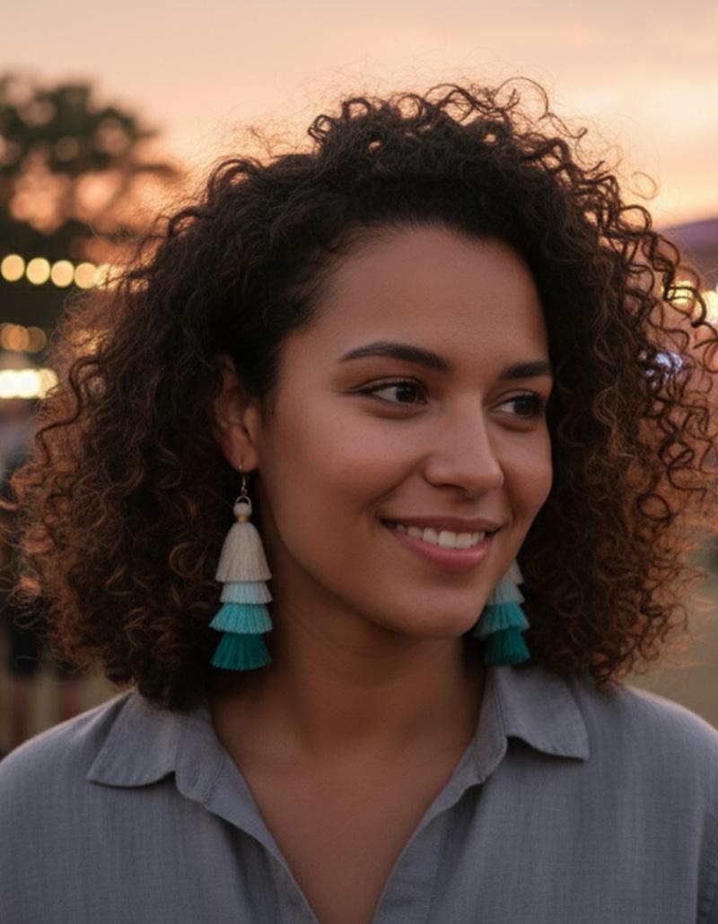 Lena trug die Bali Cinta Ohrringe zu einem örtlichen Festival, das für seine lebhafte Musik und die bunten, kreativen Outfits bekannt war. Die Ohrringe funkelten im Sonnenlicht und zogen die Aufmerksamkeit vieler Festivalbesucher auf sich. Überall, wo sie hinging, bewunderten die Menschen die kunstvolle Gestaltung und fragten nach der Geschichte hinter diesen besonderen Schmuckstücken.